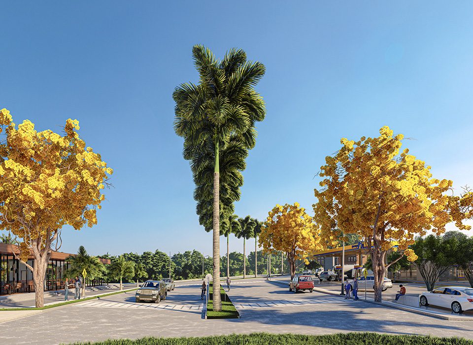 Ampla avenida iterligando o bairro. Áreas destinadas para comércio, serviços e moradia.