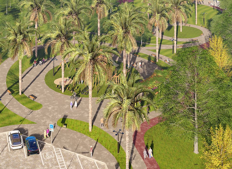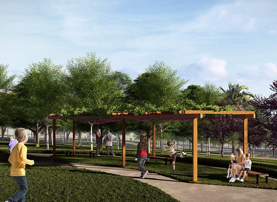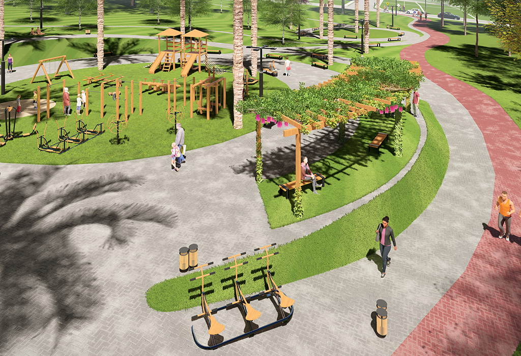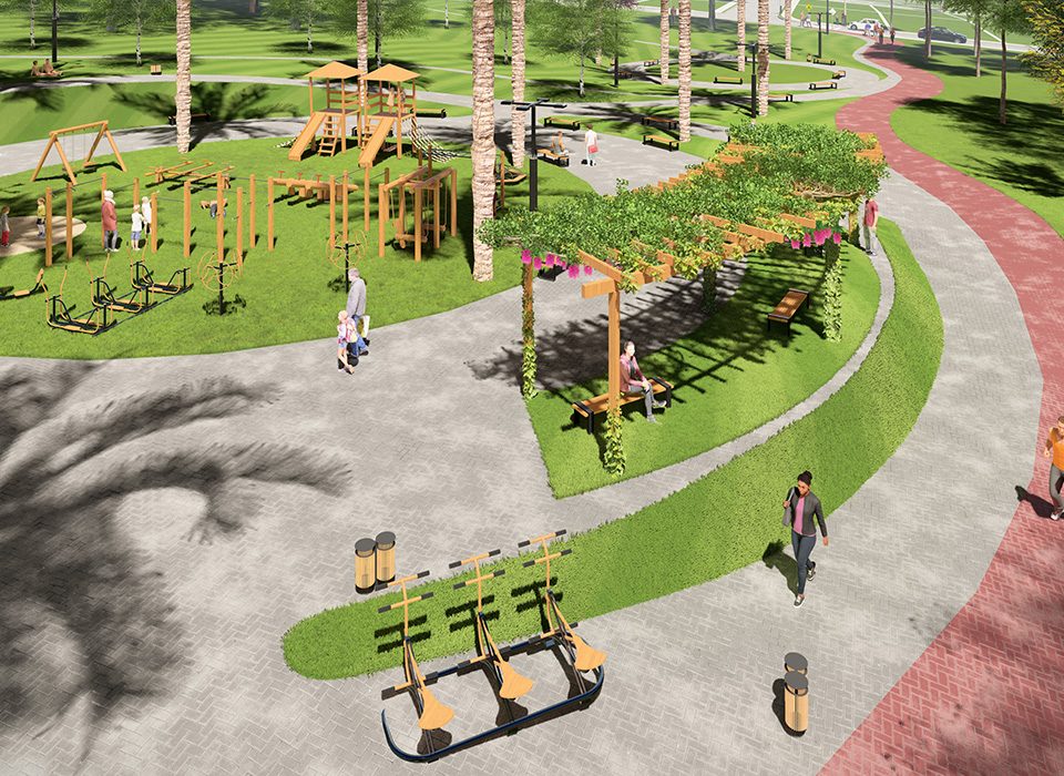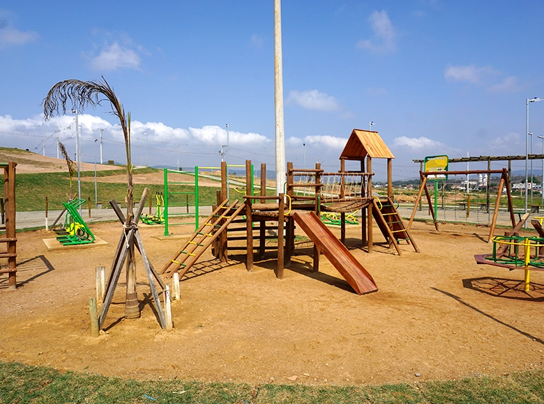Pista de caminhada; pergolado; academia ao ar livre; plaground e mirante.